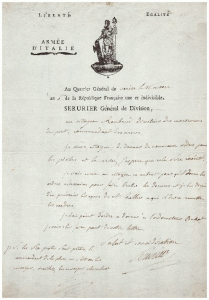 Jean-Mathieu-Philibert SERURIER. 1742-1819. Général puis Maréchal et Comte d’Empire, Gouverneur des Invalides. L.A.S. au citoyen Roubaud, directeur des mouvemens du port, Commandant des armes. Au Q.G. de Venise, 21 nivôse an 6e (10 janvier...