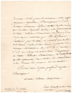 A la suite se trouve le certificat du Marquis d’Avaray « Pair de France, maître de la Garde-robe du Roi » attestant que la lettre cijointe adressée à Mr le Prince de Waldeck, est écrite par le feu Cte d’Avaray mon fils (…).