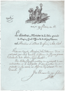 ministre de la Police générale de l’Empire, Grand officier de la Légion d’Honneur » avec vignette du ministère.