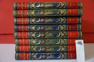 LES MILLE ET UNE NUITS, traduction de Mardrus, 8 vol in-4, demi basane bleue ornée éditeur, orné d'encadrements et 156 planches couleur d'après manuscrits persans et hindous.