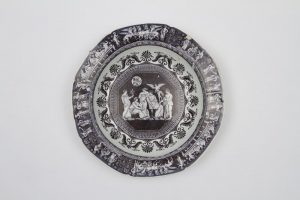 décorée d’une frise constituée de scènes à l’antique séparées par des palmettes. Manufacture de Staffordshire. Modèle attribué à Thomas Kirks. Angleterre, vers 1820. C.F. Musée maçonnique de Londres, Musée Gldf Paris. Fêlures