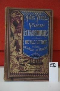 Jules VERNE - Une ville flottante et Aventures de 3 russes et de 3 anglais, Hetzel, 1873, reliure à la bannière bleue sur fond violet (usures et rousseurs, déchirure sans manque à un feuillet).