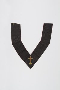 Camail de Chevalier Rose-Croix, décor au Pélican à la croix et rameaux de roses sur les côtés. XIXe siècle.