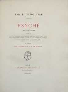 MOLIÈRE (J.-B. P. de). Psyché. Tragédie-Ballet ornée de 6 planches hors texte et 6 culs-de-lampe gravés à l’eau-forte par Champollion et publiée sous la direction de Em. Bocher. Paris, Librairie des Bibliophiles, 1880.