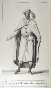 In-8, reliure demi-maroquin rouge à coins, dos à 5 nerfs orné du chiffre EB en pied, tranches dorées. Frontispice (portrait en pied du Grand Maître des Templiers) par Baquoy, lxxxii-118 pp.