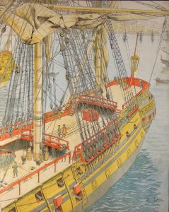 TOUDOUZE (Gustave). Le Roy Soleil. Illustrations de Maurice Leloir. Paris, Boivin, 1917. Grand in-4, cartonnage éditeur percaline bleue à grand décor polychrome sur le plat, titre doré au dos.