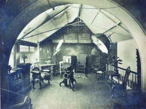 STUDIO DE PHOTOGRAPHE. Fin XIXe. Vue d’un studio avec chambre noire (14,5 x 20,5 cm). Bon état.