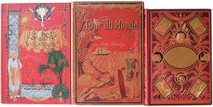 In-4, cartonnage éditeur percaline rouge à décor polychrome, tranches dorées.