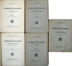 SAINTOYANT (J.). La Colonisation Française publiées aux éditions La Renaissance du Livre. … sous l’ancien Régime (du XVe siècle à 1789) 2 vol. (1929) … pendant la Révolution (1789-1799) 2 vol. (1930) … pendant la période...