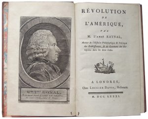 [AMÉRIQUE]. RAYNAL (Abbé). Révolution de l’Amérique. Londres, Lockier Davis, 1781.