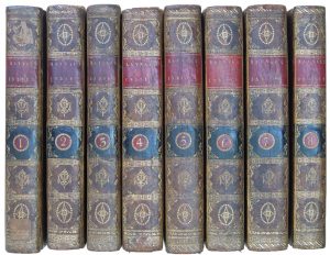8 volumes in-8, reliure veau marbré, dos lisse orné roulette ornée en encadrement sur les plats.