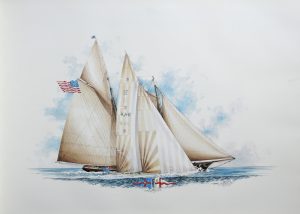 Ouvrage bilingue français-anglais, illustré d’un frontispice en couleurs et de plans en noir des yachts légendaires de l’America’s Cup de 1851 jusqu’à 1986.
