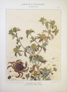 Superbes planches en couleurs : Projet de tapis, tentures, broderies, panneaux décoratifs, dessins d’orfévrerie, de vitraux, de bijoux…