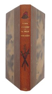 In-8, reliure (signée Vermorel) demi-maroquin noisette à coins, dos lisse mosaïqué à décor d’un casque et de trois épées, tête dorée.