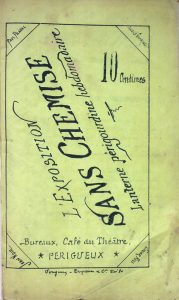 [REVUE]. PRADEL (Paul). L’Exposition sans Chemise. Lanterne périgourdine hebdomadaire. Directeur : André Gabriac. Rédacteur en chef : Jean Noir. Périgueux, Café du Théâtre, 1880.
