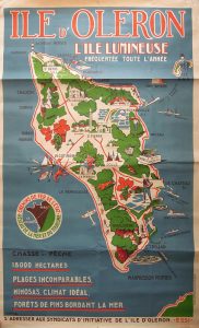 [OLÉRON, affiche]. LESSIEUX (Louis Ernest). Ile d’OLÉRON. L’île lumineuse fréquentée toute l’année. Toulouse, Imp. Sirven, s. d. (1936).