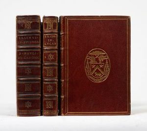 ÉRASME. Tomus primus [– secundus] Paraphraseon in Novum Testamentum, videlicet in quatuor evangelia & acta apostolorum [– in omneis epistolas apostolicas]. Paris, Galliot Du Pré, 1540. 4 parties (sur 6) en 3 volumes in-16 (sur 4), maroquin...