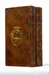 [LATTAIGNANT (Gabriel-Charles de)]. Pièces dérobées à un ami. Amsterdam [Paris], s.n., 1750. 2 volumes in-12, veau marbré, filet à froid, armoiries dorées au centre, dos lisse orné, tranches marbrées (Reliure de l'époque).