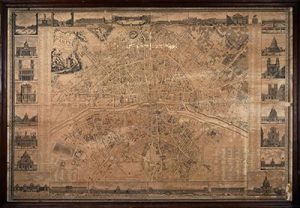orné d'un cartouche de titre tenu par deux anges et décoré des allégories de la Renommée, de la Seine et de la ville de Paris.