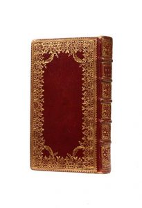dentelle aux petits fers dorés, guirlandes dorées aux angles, dos orné, roulette sur les coupes, dentelle intérieure dorée, tranches dorées sur marbrure (Reliure de l'époque).
