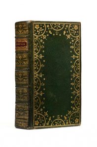 Bel exemplaire imprimé sur papier bleuté dans une jolie reliure en maroquin vert à dentelle.