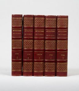•Révolutions de Paris, dédiées à la Nation et au district des Petits-Augustins. Paris, Baudoin, Laporte, s.d. [1790-1792]. 139 numéros en 12 volumes, demi-chagrin rouge, dos orné, tranches mouchetées (Reliure du XIXe siècle).