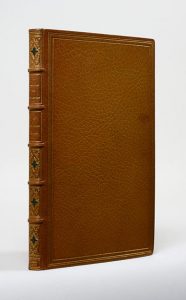 2 parties en un volume in-8, maroquin citron, triple filet doré, dos orné de fleurons de maroquin vert mosaïqué, riche dentelle intérieure, doublures et gardes de soie rouge brochée de fleurs blanches, doubles gardes, tranches dorées sur témoins (David).