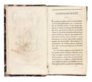 BUFFON (Georges-Louis Leclerc de). Morceaux choisis de Buffon, ou recueil de ce que ses écrits ont de plus parfait sous le rapport du style et de l'éloquence. Paris, Jules Renouard, 1830. Petit in-12, demi-basane fauve avec coins de vélin, dos...
