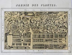 Elle est ornée d'un beau plan dépliant du Jardin des plantes, dessiné par Emily Grant et lithographié en deux tons chez Goupil, et de vignettes gravées sur bois dans le texte.