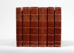 Manques infimes sur les coins de quelques volumes, manque de papier à un plat, quelques mouillures.