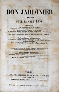 • Le Bon jardinier. Almanach pour l'année 1857. Paris, Librairie agricole de la Maison rustique, [1857]. In-12, broché. Dos fendu, rousseurs et piqûres.