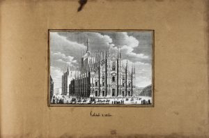 ♦Bell'album certamente assemblato in occasione di un Grand Tour : vi sono raccolte vedute di Milano, Venezia, Firenze, Roma e dintorni, Pisa, Napoli e Pompei e 17 scene di genere.