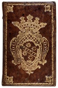 ►Bellissima legatura coeva alle armi di famiglia nobile toscana non identificata, con la scritta Pescia sullo stemma e cornice floreale a inquadrare i piatti. Timbro di collezione privata al frontespizio.