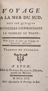 ANSON GEORGE, Voyage autour du monde, fait dans les années 1740, 41, 42, 43 & 44... À Paris : chez Quillau, père, rue Galande, 1750.