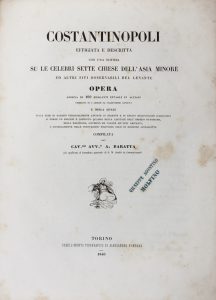 BARATTA ANTONIO, Costantinopoli effigiata e descritta con una notizia su le celebri sette chiese... Torino : Stabilimento tipografico di Alessandro Fontana, 1840.