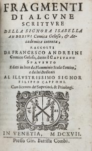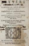 ANDREINI ISABELLA, Lettere [...]. Aggiuntovi di nuovo li Raggionamenti piacevoli dell'istessa... [Segue : ] Fragmenti di alcune scritture… In Venetia : Appresso Gio. Battista Combi, 1617.