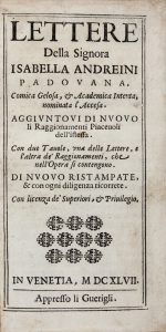 ANDREINI ISABELLA, Lettere [...]. Aggiuntovi di nuovo li Raggionamenti piacevoli dell'istessa [...]. Di nuovo ristampate, & con ogni diligenza ricorrette. In Venetia : Appresso li Guerigli, 1647.