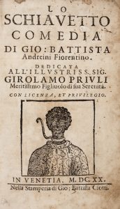 ANDREINI GIOVANNI BATTISTA, Lo schiavetto. Comedia. In Venetia : nella stamperia di Gio. Battista Ciotti, 1620.