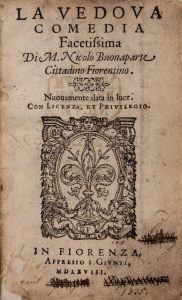 BUONAPARTE NICCOLÒ, La Vedova comedia facetissima. In Fiorenza : Appresso i Giunti, 1568.