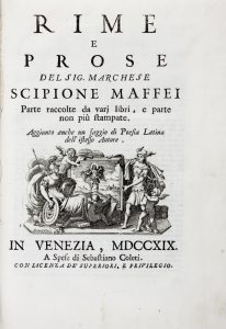 MAFFEI SCIPIONE, Rime e prose. In Venezia : a spese di Sebastiano Coleti, 1719.