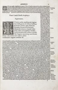 PLAUTUS TITUS MACCIUS, Comoediaes viginti plautinae ex quibus Pylades Buccardus duodevinginti solerti diligentia correxit : atque ex iis quinque elegantissime, interpretatus est. (Al colophon : ) Brixiae : Iacobo Britannico, 1506.