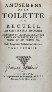 AMUSSEMENTS DE LA TOILETTE OU RECUEIL DES FAITS LES PLUS SINGULIERS... A La Haye : De l'Imprimerie de H. Scheurleer, 1756.