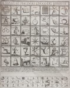 Nella sua più antica forma (è il caso dell'opera in questione) si presenta come un tabellone con 42 caselle sulle quali i giocatori piazzano delle puntate : dopo ogni giro di puntate da un sacchetto viene estratto un numero e il giocatore che ha puntato sulla casella corrispondente vince la posta in palio.