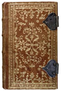 Legatura coeva in marocchino avana dorata con due bei fermagli di chiusura con cerniere a cuore.