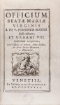OFFICIUM BEATAE MARIAE VIRGINIS S. Pii 5. pontificis maximi jussu editum... Venetiis : ex Typographia Balleoniana, 1777.