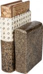 Il libro è contenuto nel suo astuccio originale in pieno vitello, l'esterno è decorato con una serie di tripli filetti a secco a formare triangoli e a seguire la curvatura del dorso, l'interno è foderato da carta xilografata.