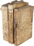 Legatura coeva in piena pergamena floscia con macchie e abrasioni ai piatti con lavoro di tarlo a quello posteriore.