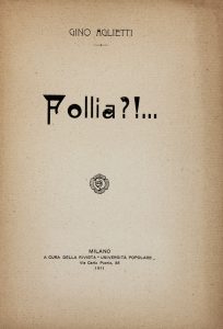 AGLIETTI GINO, FOLLIA?!... Milano : a cura della rivista Università Popolare, 1911.