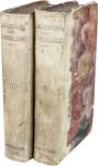 Frontespizi impressi in inchiostro rosso e nero, un frontespizio figurato al primo volume Legatura coeva in mezza pergamena con piatti rivestiti in carta marmorizzata, con mancanze nella carta e segni di usura alle estremità dei piatti : titoli manoscritti da mano moderna ai dorsi.