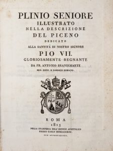 BRANDIMARTE ANTONIO, Plinio seniore illustrato... Roma : nella Stamperia dell'Ospizio Apostolico presso Carlo Mordacchini, 1815.